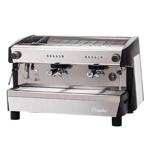 An automatic machine with volumetric dosage, polished steel body and OLED display.