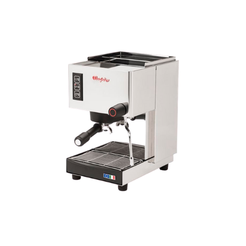 Single-group coffee machine with body in stainless steel and one steam wand.